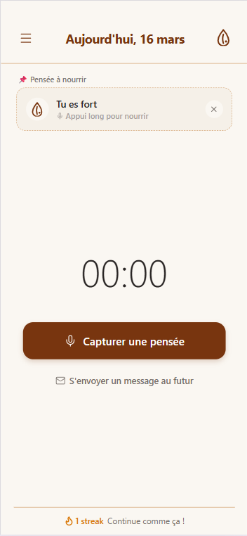 KeepYourSeed a été conçu pour être l'outil le plus simple et le plus fiable pour capturer vos pensées vocales.